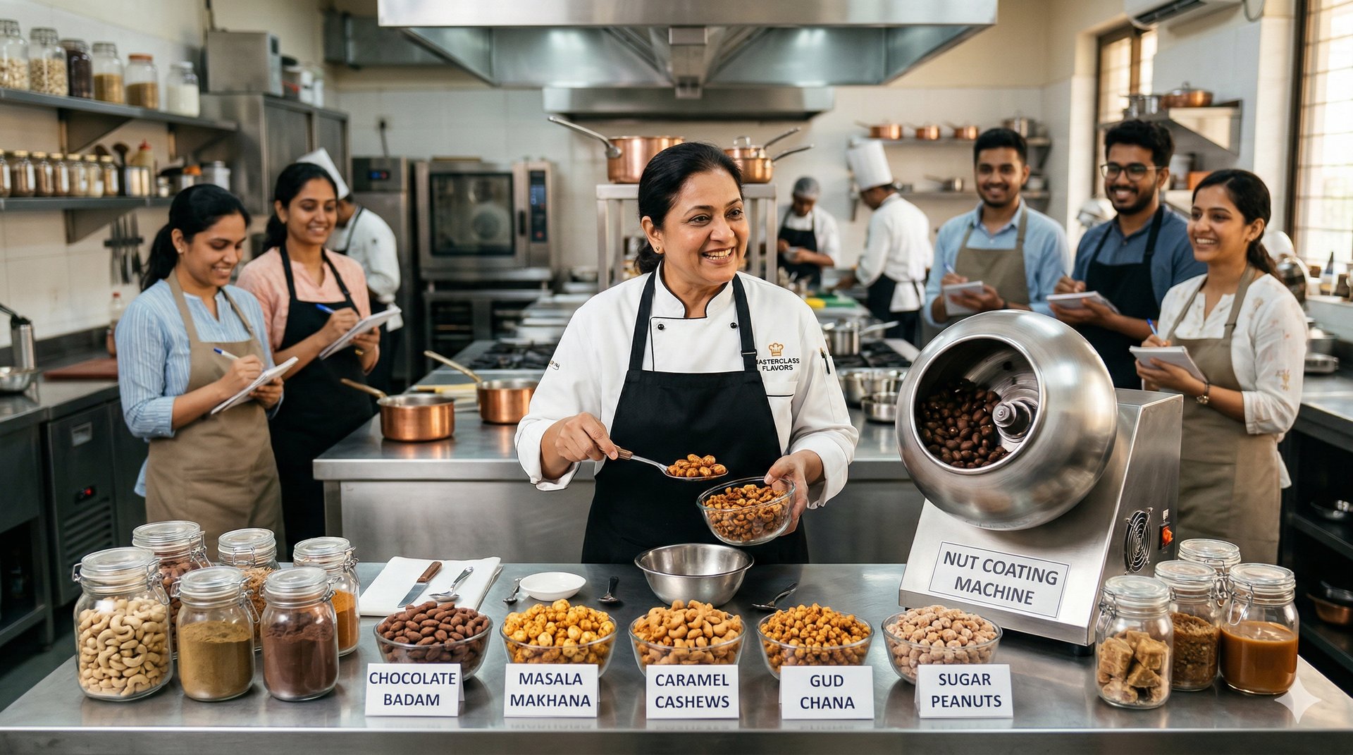 Comprehensive Coverage: Our hands-on sessions cover a wide array of techniques, including chocolate coating, jaggery (Gud) coating, masala coating, caramel coating, yogurt coating, and flavored nuts.